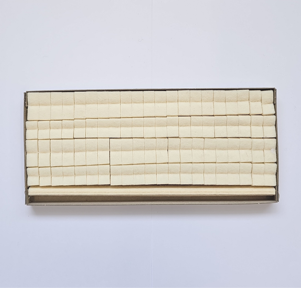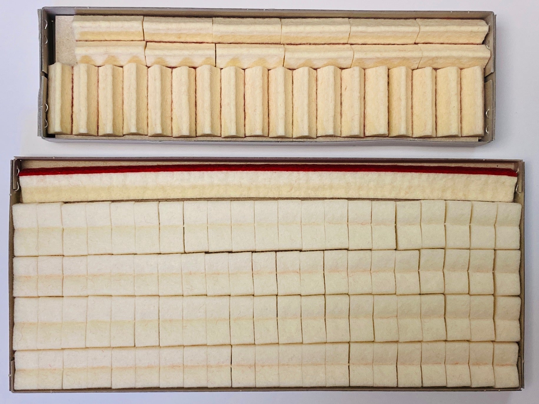 - Grand Treble: 7/16" (11mm) thick, scarlet backs, center stitched, tapered, approximately 42 pieces plus one 6-3/4" (170mm) strip trichord wedge felt. Stitched pads for approx. 1/2" to 11/16" (12.5mm x 17.5mm) in width. Per set.