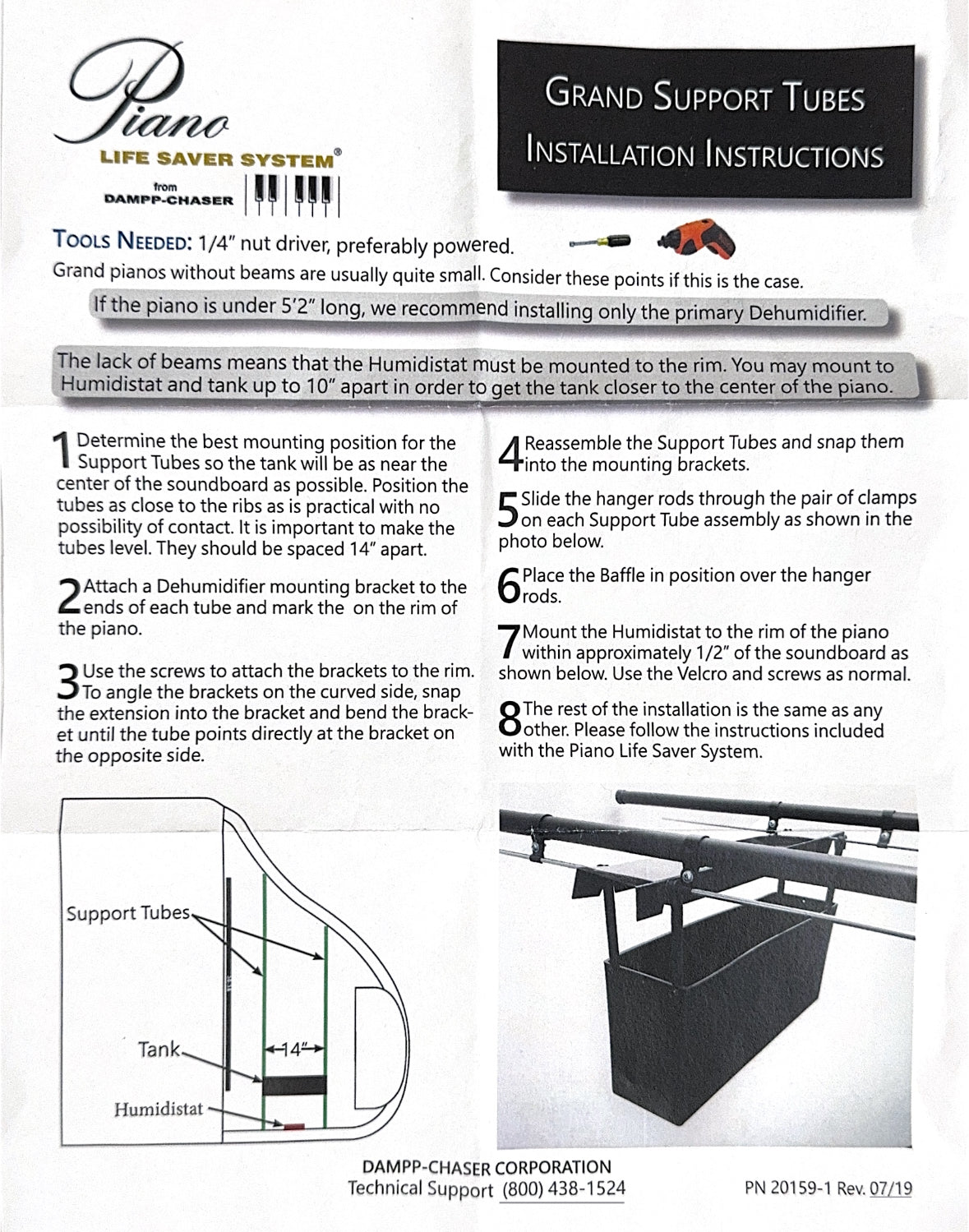 Support Tubes kit designed to facilitate System installation in grand pianos without