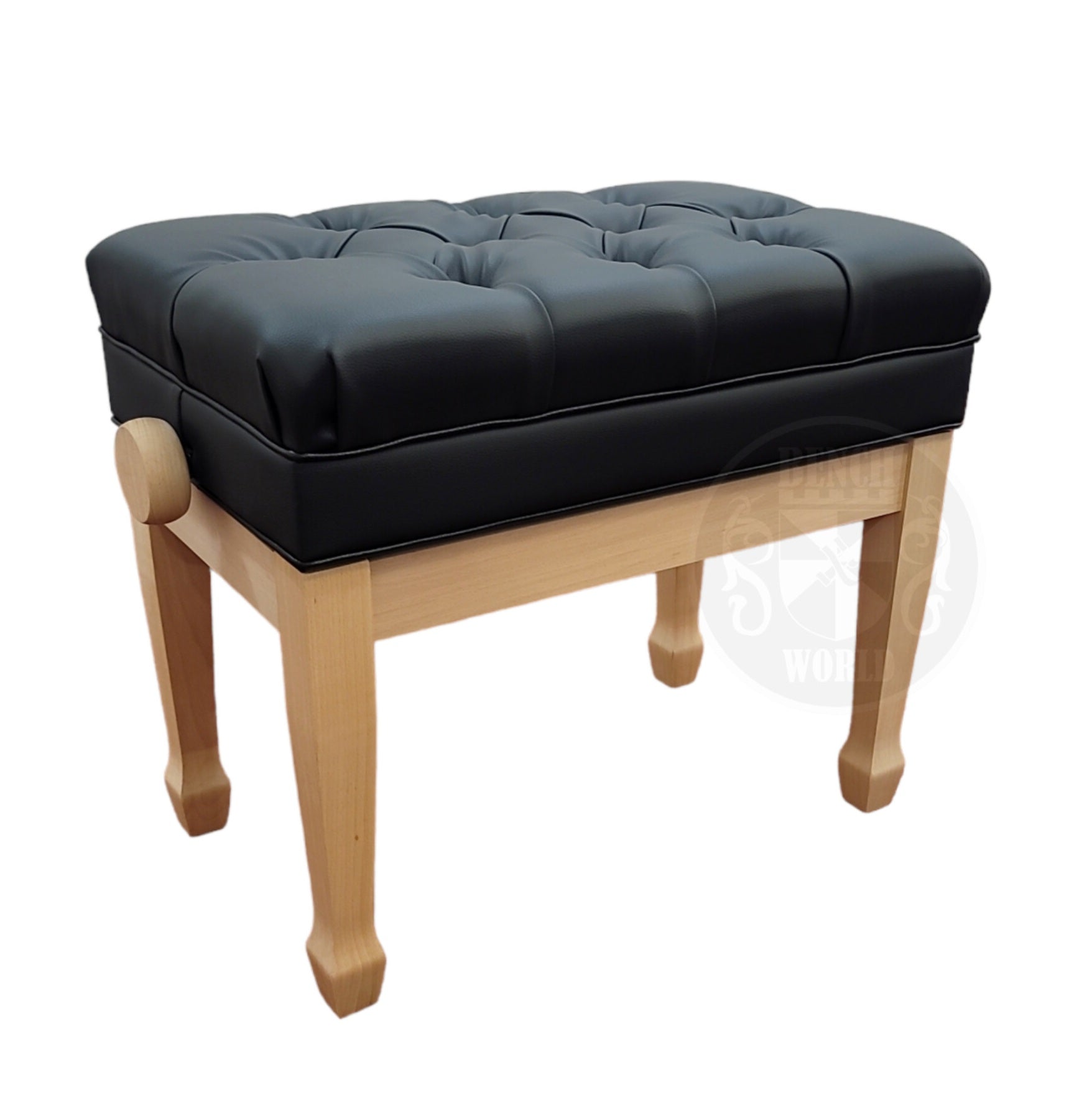 The Piano Bench Model “MINUET” is an adjustable single-size piano bench that measures 22 inches in length, 14 inches in width, and has an adjustable height from 18.7 inches to 21.5 inches. This bench is equipped with a scissor-type adjustable mechanism. In addition, this bench includes a storage space, which is perfect for storing sheet music, music books, piano accessories, or other essentials. The wooden screw knob attached to the side of the bench allows for easy height adjustments.