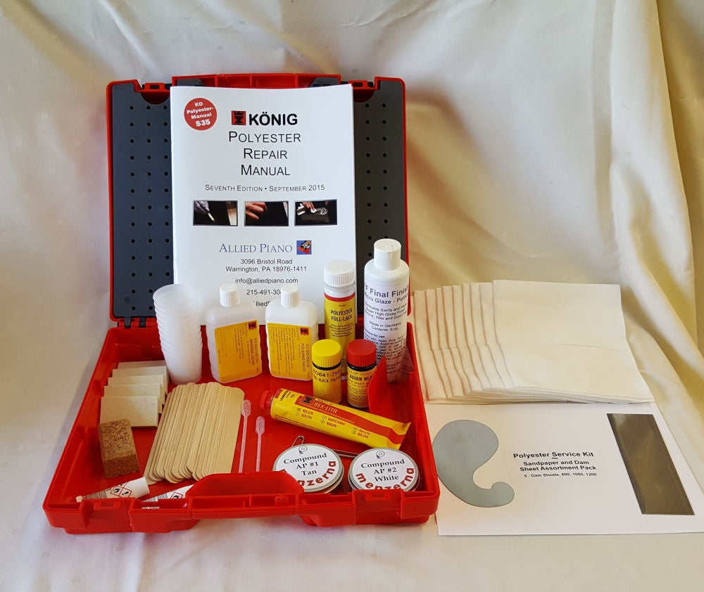 This kit includes everything you need to make perfect repairs to black polyester finishes. We pack it in a durable hard-shell case.