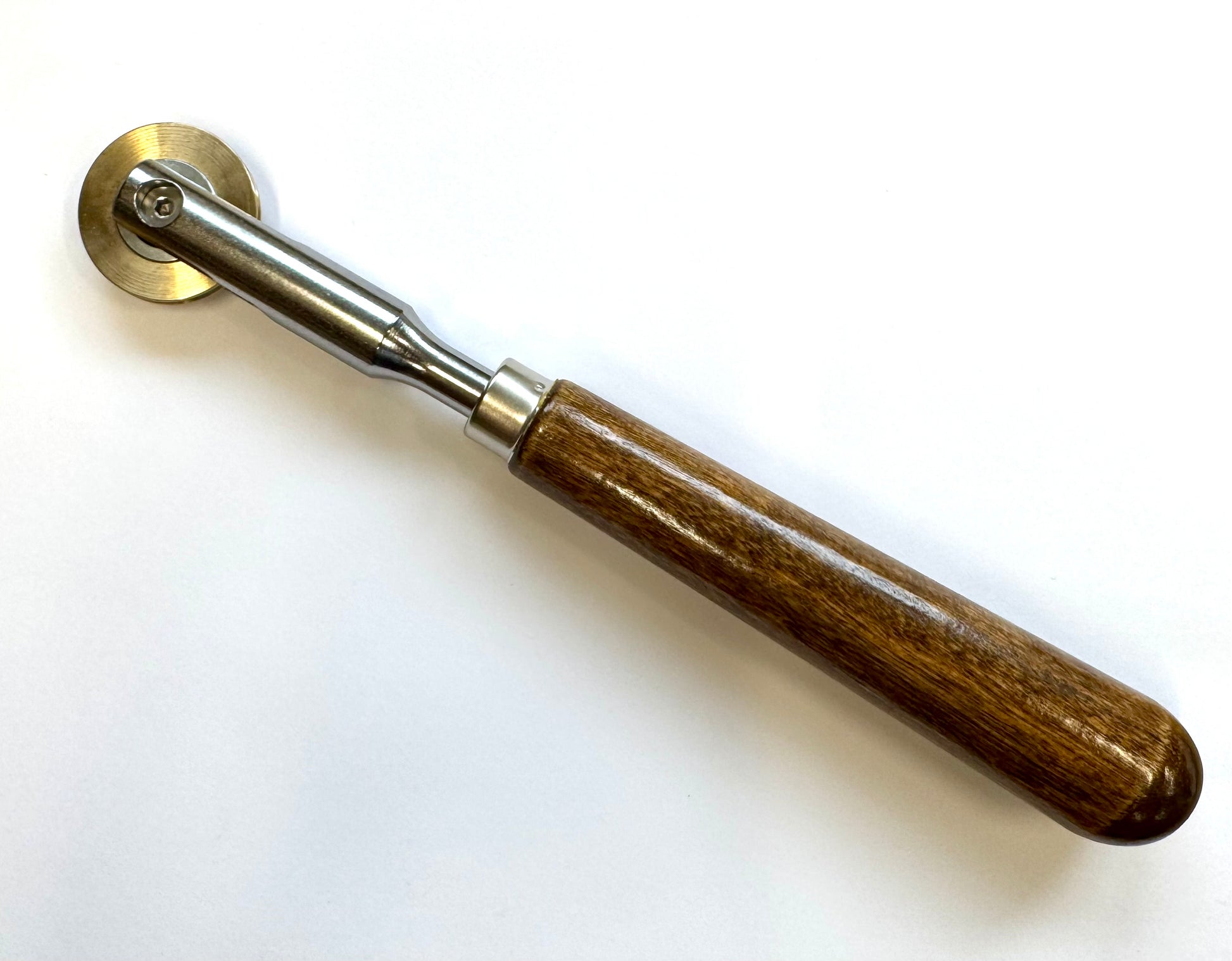 A necessary tool for any restringing job. Rolling the 1 7/8" (48mm) diameter brass wheel over newly installed piano core wire will stretch the wire and help tighten the coils. Overall length is 11" (28cm).