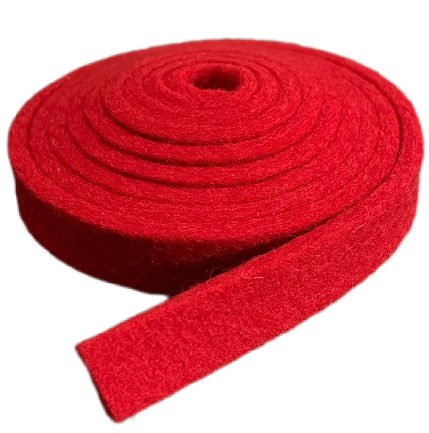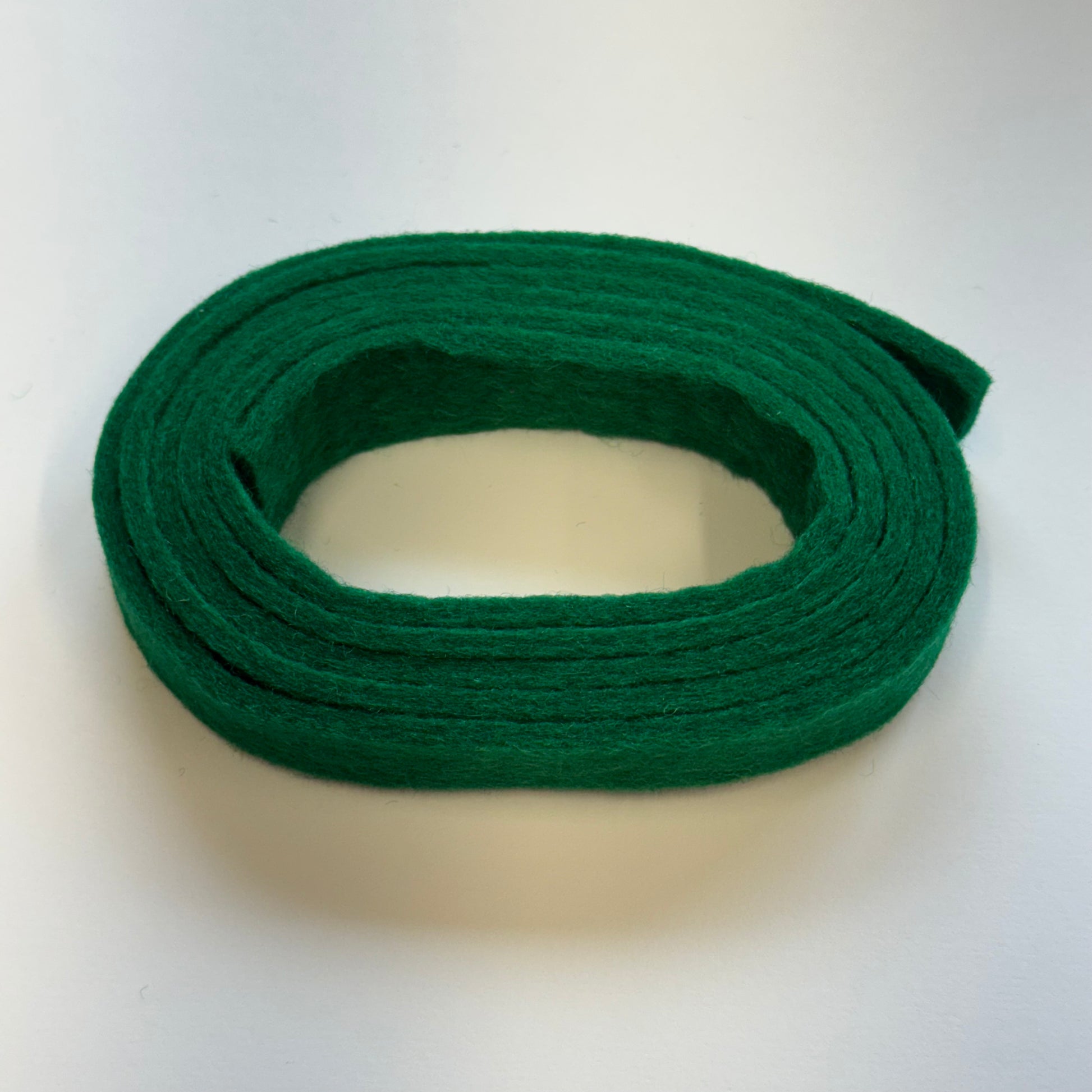 Measures 50" L x 3/4" W tapering to 1/2" W. 100% wool.
